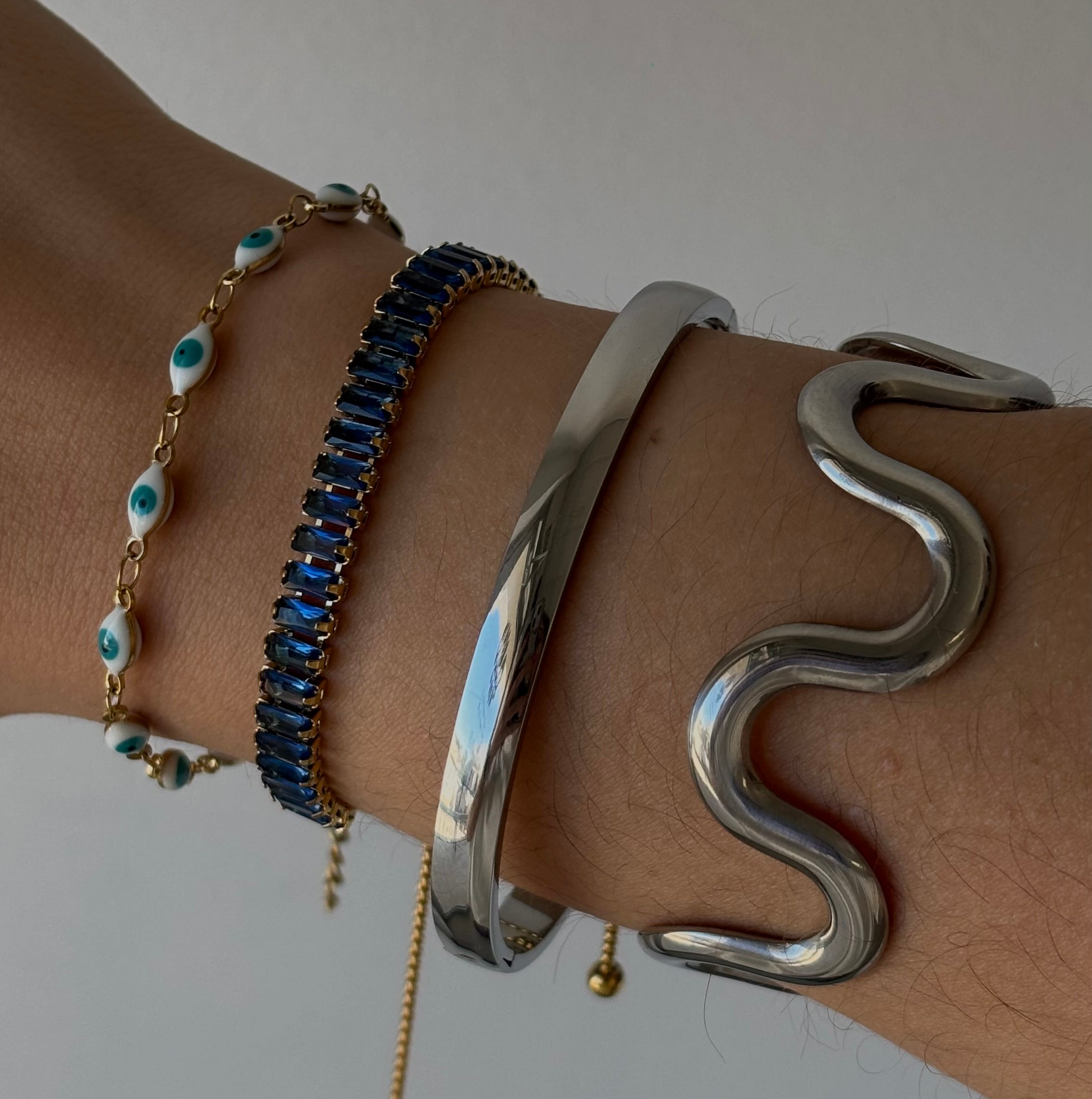 Brazalete para usar sin miedo: hecho de acero inoxidable y 100 % a prueba de agua, pensado para acompañarte en todo momento.